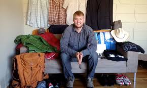 The look of trepidation is not from selling off all his possessions - it's because of the vaccinations he is about to receive And Mr Hyde admits that even his 39 items contain some luxuries - having started off owning just 15 things, including underwear and an electric toothbrush.He said he was forced to add three checked shirts and a cowboy hat to his collection after working on a ranch for a season - and bought a suit, shirt, tie and 'nice shoes' when he gave a speech at a conference. Mr Hyde's Arc’teryx Miura 30 backpack ('Still the best bag I’ve ever owned and fits everything') contains: NAU dress shirt; MacBook Air ('Lets me work anywhere in the world'); Patagonia running shorts ('For laundry and gym days'); Red Sox hat ('It was given to me before a game'); Patagonia Nano Puff hoody; Jack Spade laptop bag; Kimya Dawson Loves Me socks; Next Big Sound shirt; Big Agnes backpacking tent; four pairs of underwear; and one pair of woolen socks. The 39th non-backpack item is Mr Hyde's 2003 VW Golf.