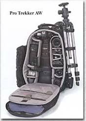 Some are dust covered, but I love them just the same. They are my bags and in times of deep despair, I can go into my bag room, shut the door and feel the strange calmness that comes over me as I just stand there and enjoy the company of my bags. But, there is good news - I may have found a remedy to my affliction of �BA�. As with many afflictions, you may not be able to totally cure the affliction but you can come to grips with it in a form of symbiosis. I have learned to accept my affliction and to be happy with it - and the word �Lowepro� was the key. Now, being the consummate �bagaholic�, I know what I want in a photography bag - namely I want durability, flexability, carrying ease, value for my money and �spiffy colors� don�t hurt. The series of Lowepro bags fits these needs to perfection. As you may have guessed by this point, I have a lot of Lowepro bags. But I have settled on a system that works great for me in all types of outdoor conditions. The foundation for my Lowepro photographic bag system is the extremely well thought out Lowepro �ProTrekker� backpack.