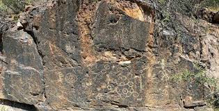 so on we hike to La Barge, where we find flowing water, yet it is somewhat clogged with moss. is ridding the narrow tent spot of a particularly small and horribly pointy burr and twigs of thorny mesquite - quite right for puncturing an air mattress or a lovely butt. It's a cool evening with some dew - we open the tent door at 5 a. and this helps. Click thumbnail to see full size image wss2011-day1-7 baby and blanket.jpg wss2011-day1-8 view from miner needle.jpg wss2011-day1-9 K and Miner Needle.jpg Day 2: Hieroglyph Ho: to Terrapin Pass Trail 234; 7 miles, up 670', down 750'; ERM = 10, camp at 2600'. There they are - the petros purportedly serving as an area map. look old and typically puzzling too. Lovely - and so difficult to not find last trip. A lovely lounging lunch is enjoyed at Charle Bois Spring. K wants to continue, so we drone on along La Barge and I hear a froggy cut lose Another junction, Marsh Valley area - sporting a few large leafing-out trees.